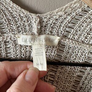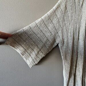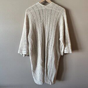 Women's M Eileen Fisher Duster Cardigan Sweater Beige Open Crochet Weave