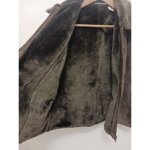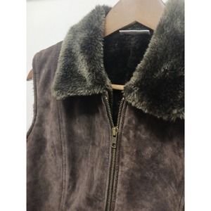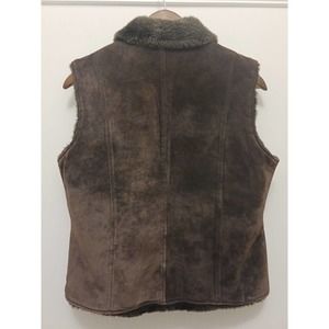 Women's M Genuine Brown Leather Full Zip Vest Polyester Lining Madison Studio