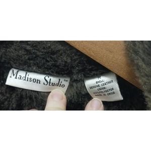 Women's M Genuine Brown Leather Full Zip Vest Polyester Lining Madison Studio.