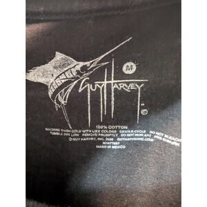 Women’s M Guy Harvey Black Blue Marlin Floral Color T Shirt 100% Cotton