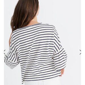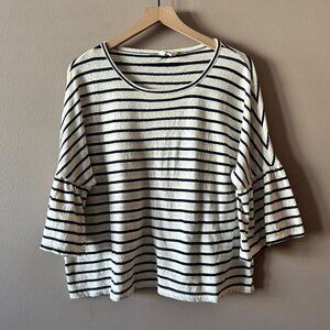 Women's M Madewell Striped Flare bell sleeve blouse Ivory Blue Ruffles
