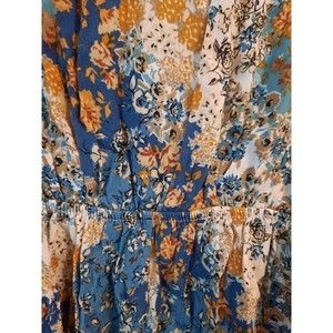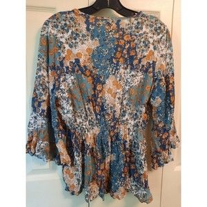 Womens M Medium Relaxed Floral Top Tiered Ruffle Bell Sleeve Blue Honeyme NWT