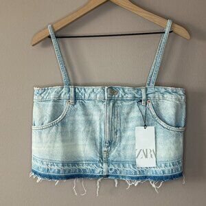 Women's M NWT Zara Skirt Effect Crop Denim Spaghetti Straps Jean Tank Top