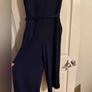 Women’s M Navy Blue Cropped Length Michael Kors Jumpsuit w Waist Tie and Pockets