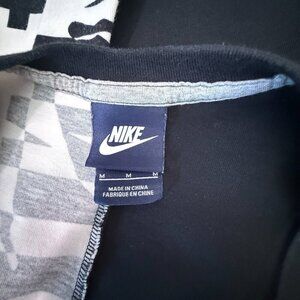 Tags: nike, tank top, black, white, split print, crew neck, high low, sleeveless, logo, Athleticwear, sporty, workout, yoga pants, leggings, errands, playdates, athleisure, loungewear, around the house, cleaning, walking, jogging, running, weight lifting, workout classes, travel wear, vacation, winter, spring, summer, fall, active wear, gym wear, yoga, athletic apparel, blokecore, pullover