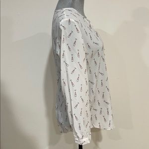 Women’s 100% silk blouse, white with pink champagne in clinking glasses. I removed the label fir comfort and didn’t keep it