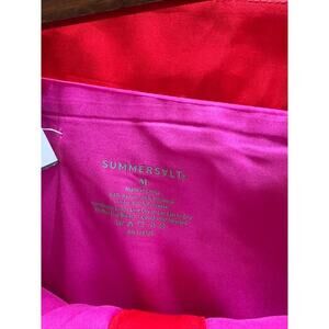 Stand out in this stunning Summersalt midi dress, size Medium, featuring saturated pink and red colorblocking with a belted waist and button-front detail. This head-turning piece is perfect for European summer escapes, Glastonbury picnics, coastal weddings, and holiday getaways. Lightweight and flattering, it transitions seamlessly from vacation brunch to rooftop drinks. Wears well for spring, summer, and even into fall with a cardigan.