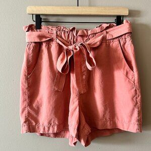 Women's M Thread + Supply Paper Bag Shorts Pink Belted High Rise Elastic Waist