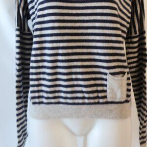 Womens M by Michael Stars Gray Navy Blue Striped Wool Cashmere Sweater 2 US/M