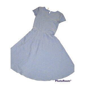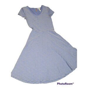 Women's MATILDA JANE Dress Exploration Blue Tan Stripes Small Knit. Back button closure, machine wash