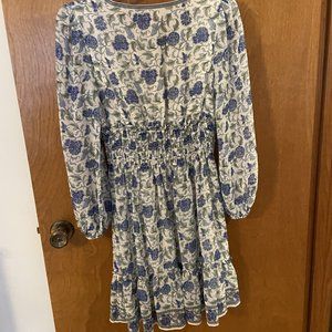 Women's MAX STUDIO Stretch White Blue Floral Smocked Waist Dress Size Small, NWT