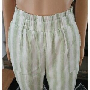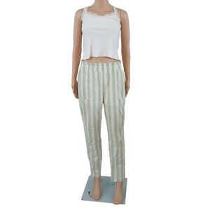 Women's MEDIUM Striped Pants Boho Beachy Lined Light Pockets High Elastic Waist