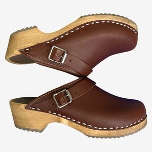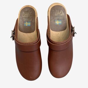 Womens MIA Alma Clog Brown Luggage Leather Wood Swedish 38 US 7.5/8