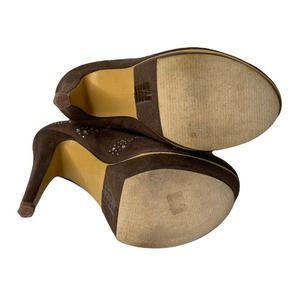 Womens MICHAEL ANTONIO Brown Rhinestone Studded Platform Ankle Booties Heels 7