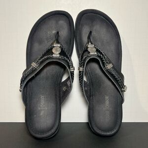 Womens MINNETONKA Silverbay Black Flip Flop Sandals / Size 10