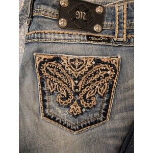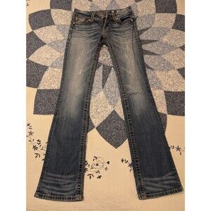 Women's MISS ME JW5367B2 Distressed Boot Blue Jeans, Size 27 x 32.5. pre owned but well cared for. Never been dried in the dryer, hung dry only. Always washed inside out. Pockets in great condition. Small holes on the thigh of the legs, but originally came with a distressed look.