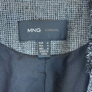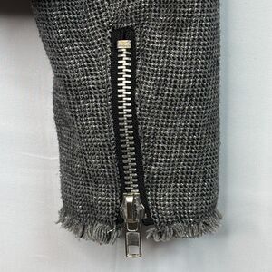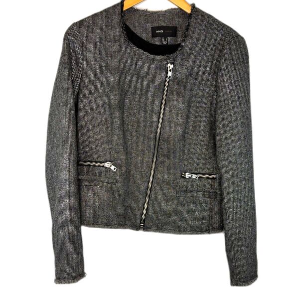 Womens MNG Casual Tweed Asymmetrical Blazer Metal Zippers Pockets Raw Hem Small