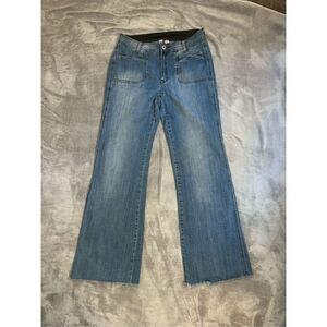 Women’s MNG Medium Wash Bootcut Leg Jeans. See pics for measurements. Raw hem at feet. Sz 12