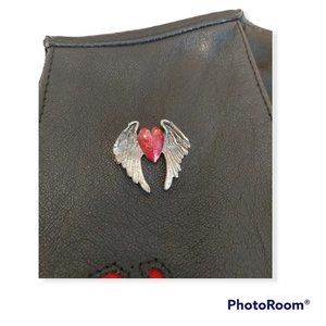 Women's MOB Rose Fringed Leather Vest with Suede Inserts and Pins.
