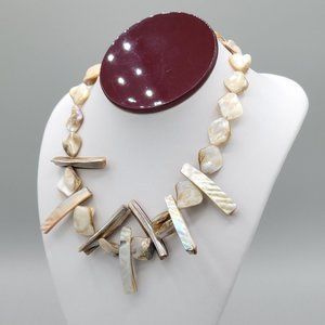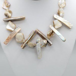 Womens MOP Mother of Pearl Beaded Fashion Necklace Lobster Clasp 16 in