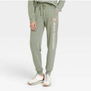 Women's MTV Leopard Print Logo Graphic Jogger Pants soft lounge sweats