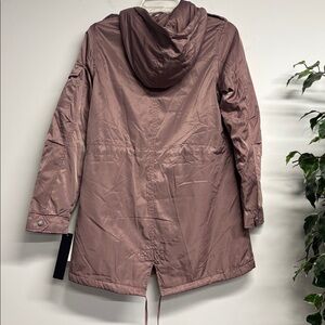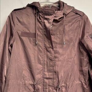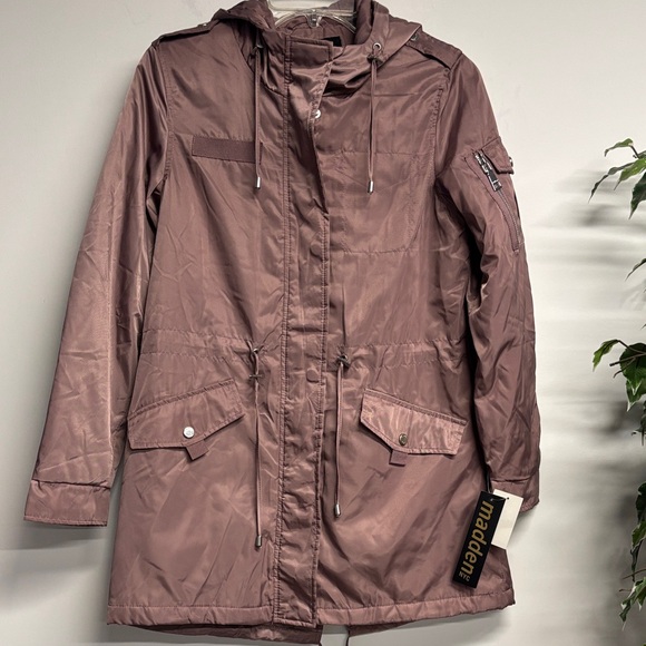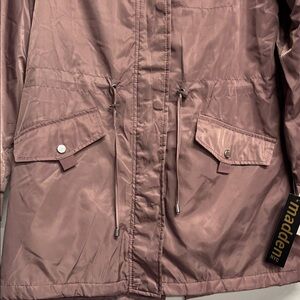 Elevate your wardrobe with the Women's Madden NYC jacket in dusty pink. This stylish jacket offers both functionality and fashion, featuring a comfortable fit and practical pockets. Zipper and snap front.