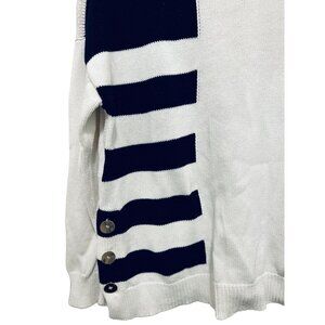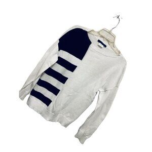 Cotton Knitted Crewneck Sweater with Black White Stripes by Les Copains