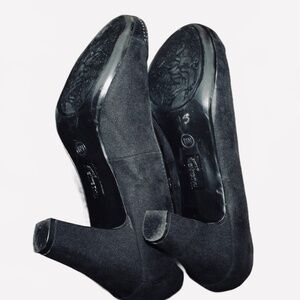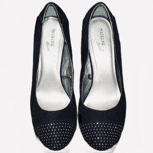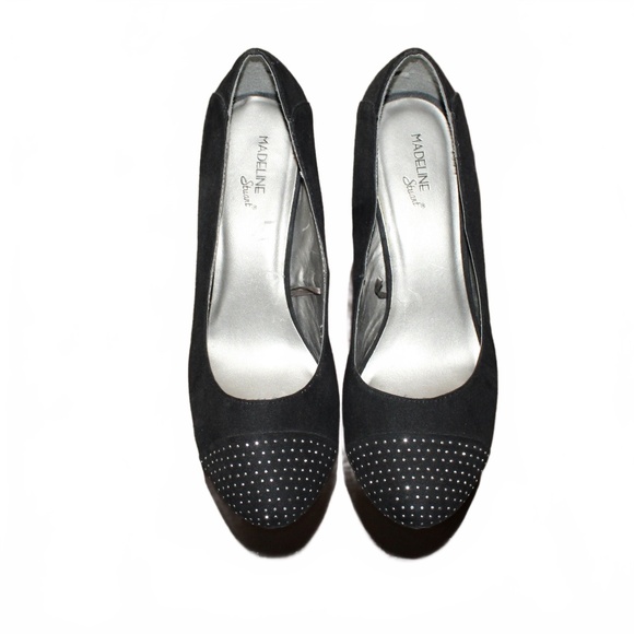 Women’s Madeline Stuart Amanda Heels, Black Suede-like, Studded Toes, Size 11M