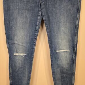 Excellent condition, women's Madewell 9" High-Rise Skinny jeans in a distressed denim with raw ankles. These do stretch.