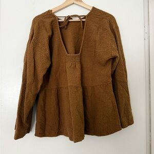 Elevate your wardrobe with this stylish brown textured top. Perfect for any occasion, this top offers both comfort and elegance.