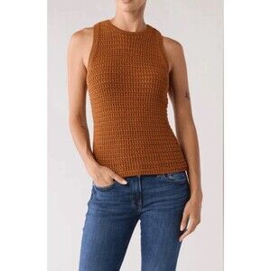 Women’s Madewell Crochet-Knit Crewneck Sweater Tank Warm Coffee Large Brown