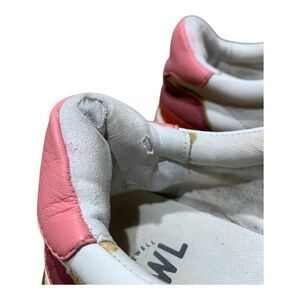 Stylish sneakers featuring vibrant pink and orange accents. Perfect for adding a pop of color to any outfit.