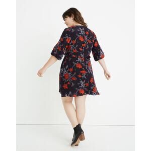 Women’s Madewell Silk Ruffle Waist Dress in Pattern Windblown Poppies