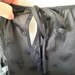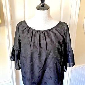 Womens Madewell Sz Medium Blouse Top Black Sheer Lined Butterfly Flutter Sleeve