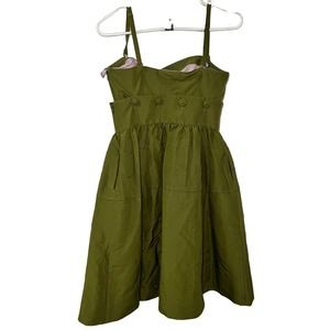NWT Maeve Green Button Belted Convertible Dress NWT Maeve Anthropologie womens sz 4 green button belted strapless convertible dress. Dress can be worn without the top, as a skirt. Please note that the removable straps are not included. Size: 4 Color: Green Materials: 81% Cotton, 19% Silk