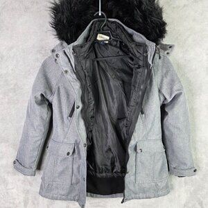 Womens Magellan Gray & Black Hooded Parka Jacket w/ Black Quilted Inner Layer M