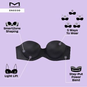 BASICALLY SEXY - Ultra-flattering intimate solutions for every body. • VERSATILE BRIDAL STYLE - Sleek fabric is nearly invisible beneath clothing - making it one of the best bras for wedding dresses and formal wear. • STAYS UP - Eliminate slipping, sliding, and shifting with our Stay Up Power Band. • MADE TO FIT TIGHT - Designed to fit snugly to stay in place, size up for a more comfortable fit. • SUPPORT YOU NEED - Underwire design provides just the right amount of support and SmartZone cup technology molds to your unique shape for a great fit. regular, strapless, making it a wonderful choice as a wedding bra. • COLD WATER WASH - Maidenform recommends hand washing this strapless bra in cold water to reduce energy consumption.