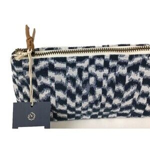 Women's Universal Thread blue and white checkered Zip Up Pouch Makeup Bag Carry Clutch