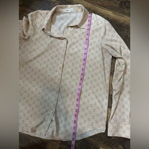Women’s Mango monogram printed cream button down flowy shirt size 4