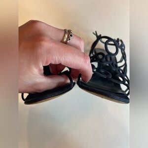 Rare suede navy blue Manolo Blahnik sandals size 40 best fit is US size 9. Excellent condition no signs of wear to heels or vamps