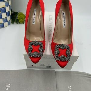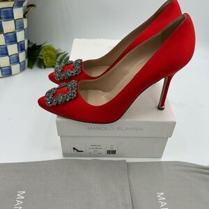 Women’s Manolo blahnik red satin pumps size 37.5 made in Italy