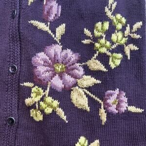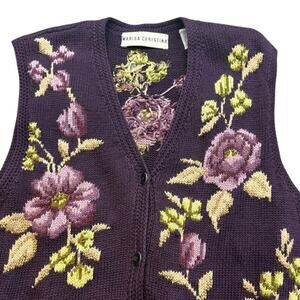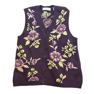 Women's Marisa Christina Deep Purple Floral Embroidered Sweater Vest Size Medium