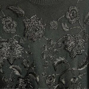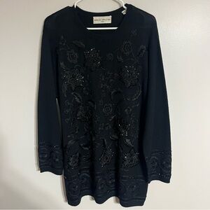 Women’s Vintage Marisa Christina oversize sweater or sweater dress black with black embroidery and beading detail in a floral pattern