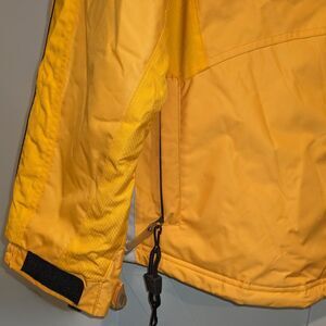 Hit the slopes in style with this women’s Marker insulated ski coat in bright yellow (size 14). This high-performance snow jacket features a full front zipper, zippered hand pockets, cord locks at the hem for a snug fit, and a clean no-hood design perfect for layering or simply for a streamlined look. The fleece-lined collar adds comfort while the insulation keeps you warm in cold, snowy conditions. Ideal for skiing, snowboarding, or winter outdoor adventures. Excellent pre-owned condition with minimal wear and ready for its next outing.
