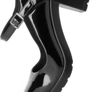 Features: These sleek Mary Jane heels feature a shiny faux leather finish and a chunky mid-low heel that adds height without sacrificing comfort. The ankle buckle closure gives a secure fit, while the rounded toe and padded heel pillow make all-day wear a breeze.