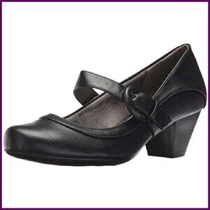 • Style: Classic Mary Jane pump with a round toe and adjustable buckle strap closure.