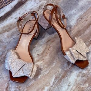 Women’s Massimo Dutti raffia bow brown leather heeled sandal. Size 37. Excellent condition! See all photos. Smoke free home. Fast shipping!