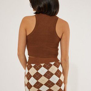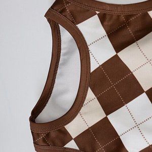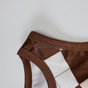 Womens Matching Set Outfit Tank Skirt Mini Size XS Brown Ivory Diamond Stretch