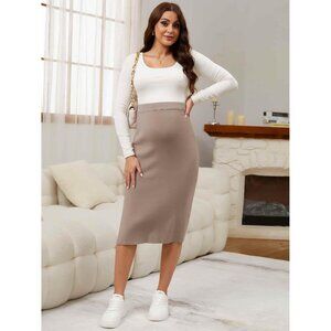 Women's Maternity Sweater Midi Skirt Side Split Stretchy High Waist Bodycon