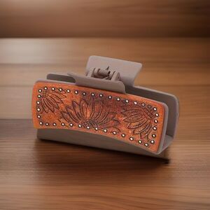 Women’s Matte Western Sunflower Pattern Design Craft Claw Clip,Faux Leather NEW